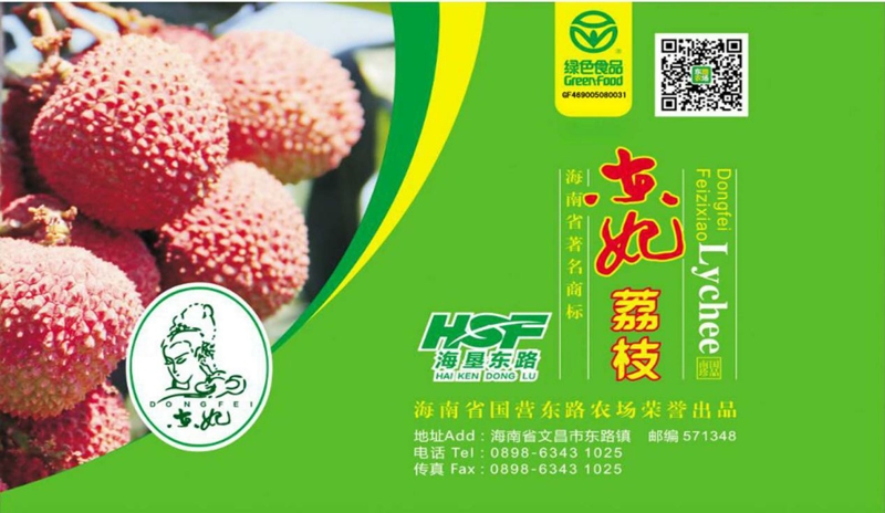 產(chǎn)品特色:荔枝生產(chǎn)是東路農(nóng)場公司品牌主打產(chǎn)業(yè)之一,也是海南地區(qū)荔枝的重要產(chǎn)區(qū)之一。 “東妃”牌荔枝1992年從廣東東莞引進,現(xiàn)發(fā)展面積已達1.05萬畝,其中荔枝標準化基地696.6畝,土壤農(nóng)藥殘留量、空氣質(zhì)量、水源等指標均符合國家規(guī)定標準,利用“生物導(dǎo)彈”“高效多功能殺蟲平臺”等技術(shù)手段,防治荔枝害蟲,減少化學(xué)農(nóng)藥的污染。2002年,注冊“東妃”牌荔枝商標,同年被海南省農(nóng)業(yè)廳確認為無公害農(nóng)產(chǎn)品產(chǎn)地認證,2008年通過中國綠色食品發(fā)展中心認定為“綠色食品”A級產(chǎn)品、獲得“海南著名商標證書”,2014年獲國家農(nóng)業(yè)部產(chǎn)品質(zhì)量安全中心“無公害農(nóng)產(chǎn)品證書”,2015年被海南省農(nóng)業(yè)廳認定為“海南名牌農(nóng)產(chǎn)品”,2017 年榮獲良好農(nóng)業(yè)(GAP)認證。