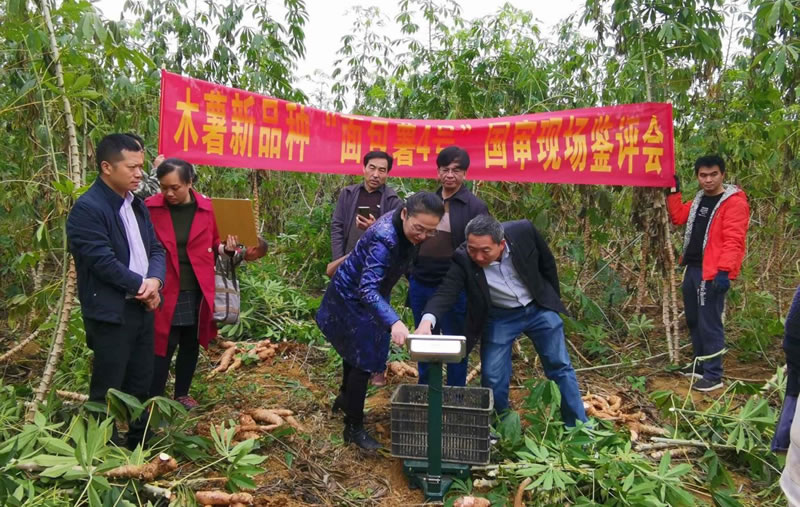 專家組在廣西南亞熱帶農(nóng)業(yè)科學(xué)研究所木薯示范基地進(jìn)行現(xiàn)場(chǎng)測(cè)產(chǎn)、木薯氫氰酸含量現(xiàn)場(chǎng)檢測(cè)、食用品質(zhì)鑒定等內(nèi)容,認(rèn)真聽取了選育團(tuán)隊(duì)對(duì)2個(gè)木薯新品種培育情況的匯報(bào),就有關(guān)問(wèn)題進(jìn)行了質(zhì)詢,一致同意2個(gè)新品種通過(guò)現(xiàn)場(chǎng)鑒評(píng),并建議分別命名為“桂木薯8號(hào)”、“桂木薯9號(hào)”。