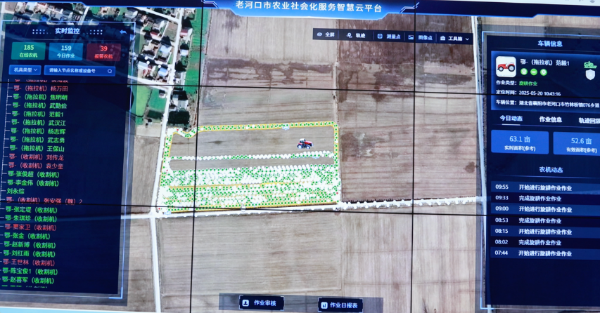在老河口市農(nóng)業(yè)社會化服務(wù)中心,代表們仔細(xì)觀摩了當(dāng)?shù)刂腔墼破脚_實(shí)時監(jiān)控系統(tǒng)。通過該系統(tǒng)的“天眼”,不僅能實(shí)時知曉系統(tǒng)內(nèi)185臺農(nóng)業(yè)機(jī)械的作業(yè)軌跡,還能全時掌握土壤墑情、病蟲害預(yù)警等重要信息,為農(nóng)業(yè)社會化服務(wù)提供科學(xué)的數(shù)據(jù)支撐。