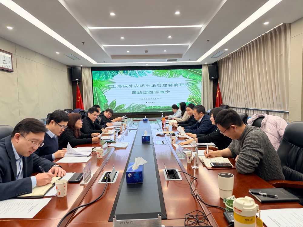1月30日上午,上海市域外農(nóng)場(chǎng)管理辦公室委托中國(guó)農(nóng)墾經(jīng)濟(jì)發(fā)展中心承擔(dān)的決策咨詢課題《上海域外農(nóng)場(chǎng)土地管理制度研究》順利通過(guò)結(jié)題評(píng)審。