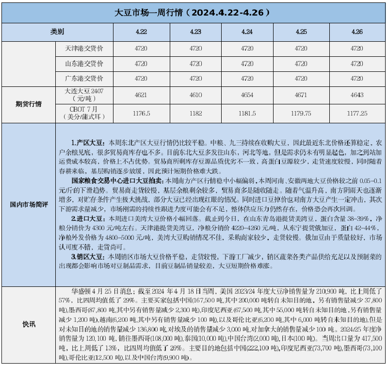 天然橡膠、大豆、玉米市場一周行情(2024.04.22-04.26)