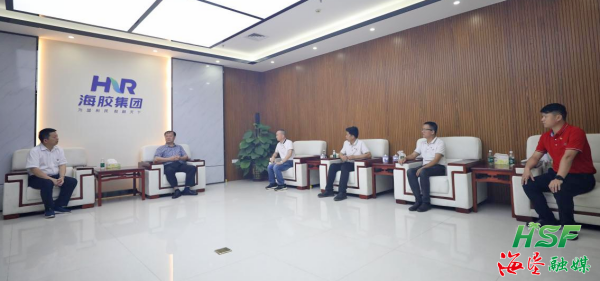 海南橡膠領(lǐng)導(dǎo)與專家團親切交談。黃薇 攝