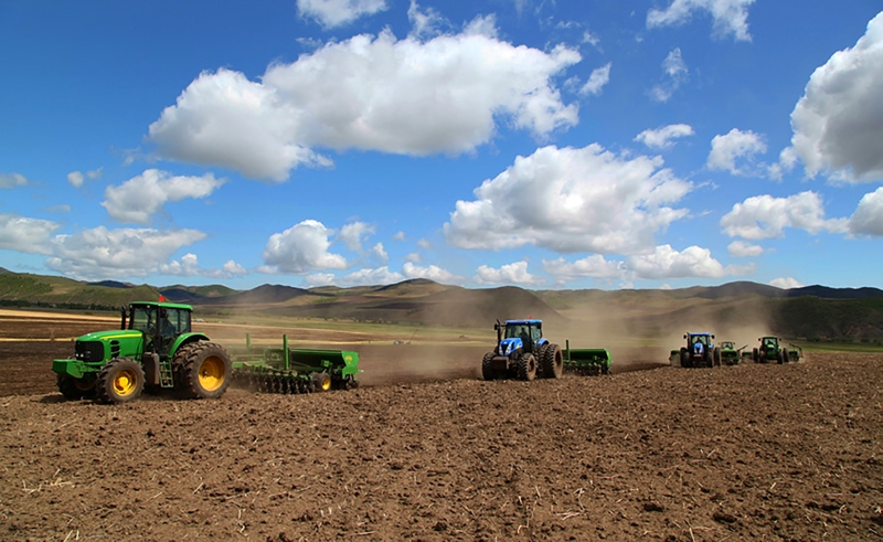 你看,春天的腳步在牧場走過,消融了山間的冰雪、褪去了一冬的寒冷。清早起來,雪白的羊群尋著泛綠的青草漫步在山坡上,星星點(diǎn)點(diǎn)、悠然自得,仿佛天上的白云倒映下的影子。小小的牧場,在這一方寧靜的山水之間,伴著裊裊升起的炊煙也慢慢變得生動活潑起來。北方的春天,來得遲去得快。在春的尾巴,隆隆的機(jī)聲打破了田野許久的沉寂,一臺臺或紅色或綠色的大型拖拉機(jī)牽引著播種機(jī)、鎮(zhèn)壓器往來穿梭,它們用鐵犁劃開沉睡一冬的土地,讓泥土的清香盡情宣泄在天地之間,是農(nóng)墾人在大自然中演奏出的豐收序曲。