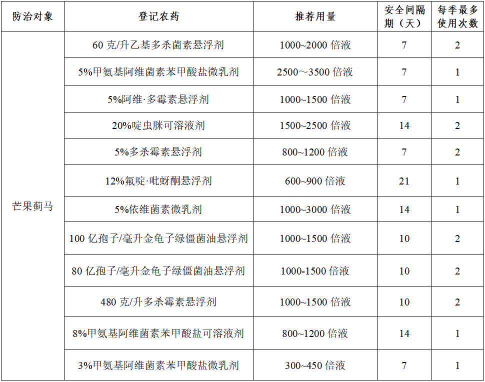表   防治芒果薊馬可供選用的登記農藥產品相關信息