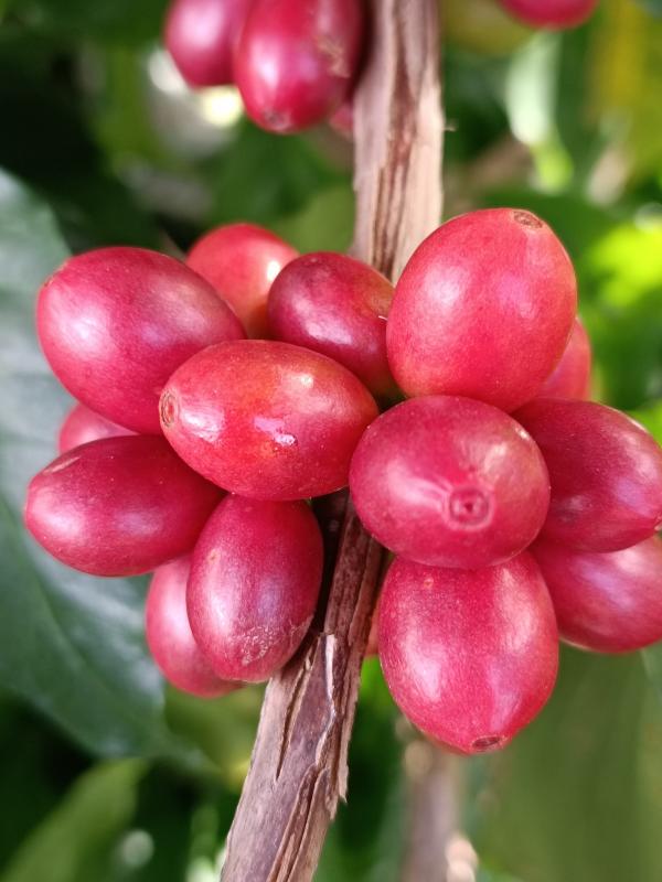 “德熱4號”系云南省德宏熱帶農業(yè)科學研究所從葡萄牙熱帶研究所(IICT)咖啡銹病研究中心(CIFC)引進育種材料SL1-Sarchimor選育而成,完成了品種比較試驗、區(qū)域性試驗和生產性試驗?!暗聼?號”具有抗銹病、品質優(yōu)良、豐產穩(wěn)產、生勢強、商品豆粒度大等優(yōu)點,經現場測產,芒市試驗點平均單株鮮果重6.86kg,按畝植333株折合,畝產鮮果2284.38kg,保山試驗點平均單株鮮果重5.84kg,按畝植333株折合,畝產鮮果1944.72kg?!暗聼?號”適宜在我國云南德宏、保山、臨滄、普洱等小粒咖啡宜植區(qū)種植。