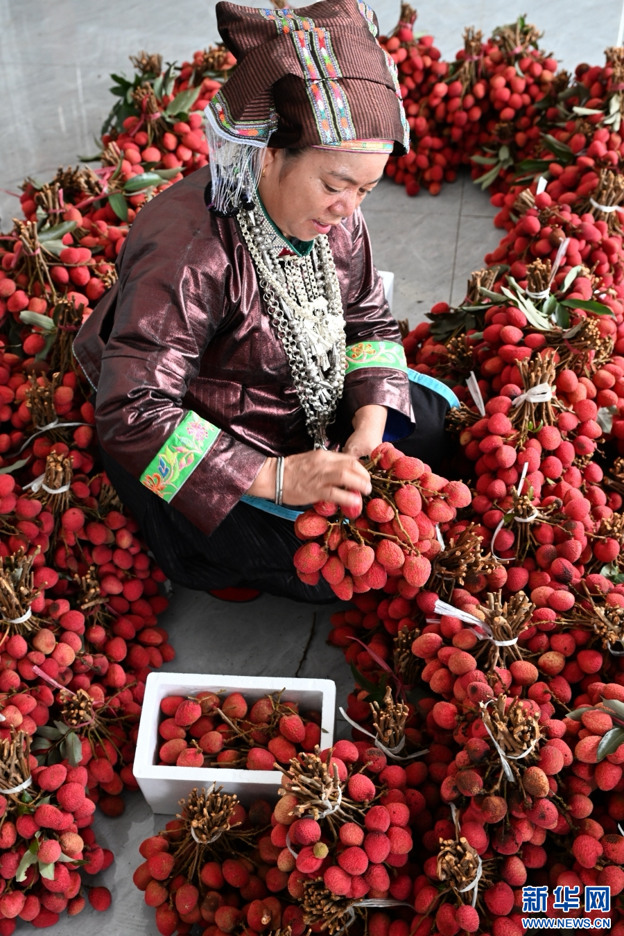 村民采摘荔枝(6月9日攝)。新華網(wǎng)發(fā)(熊平祥攝)