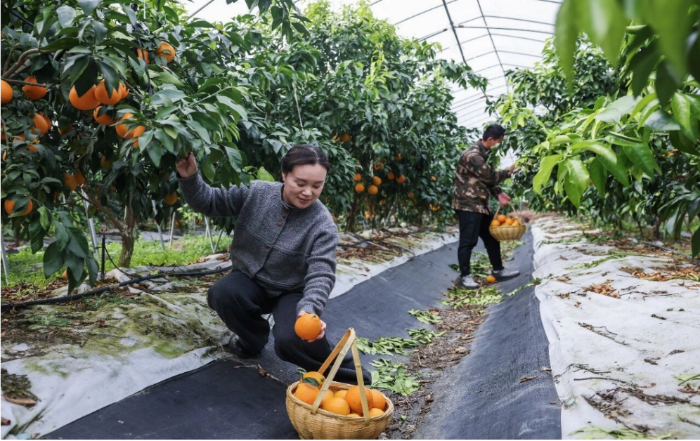 12月4日,游客在浙江省長(zhǎng)興縣和平鎮(zhèn)東山村四季鮮果家庭農(nóng)場(chǎng)體驗(yàn)采摘游。