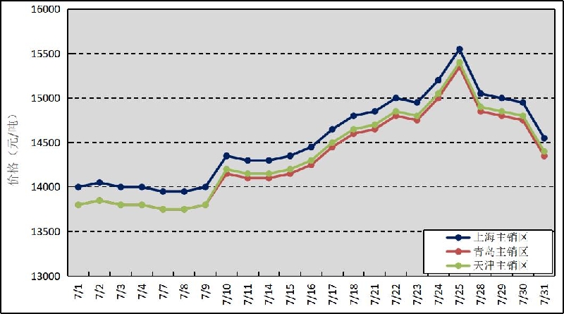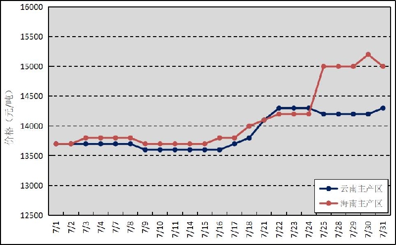 圖3 2025年7月國(guó)內(nèi)主銷區(qū)天然橡膠價(jià)格走勢(shì)