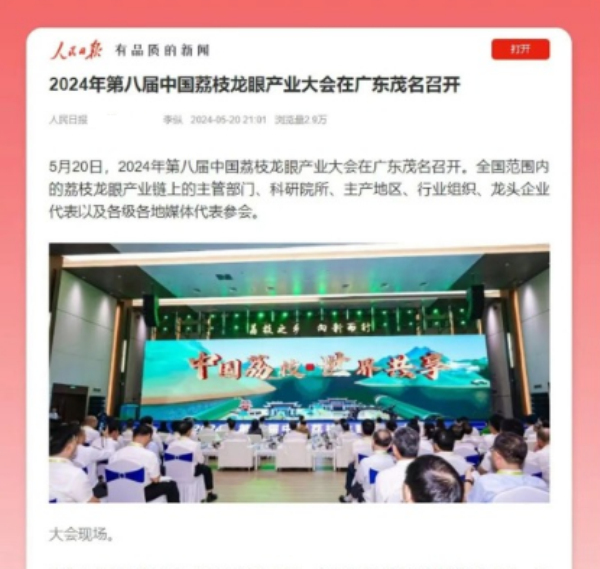 6.2024年5月,中心聯(lián)合有關(guān)單位在廣東省茂名市成功舉辦第八屆中國(guó)荔枝龍眼產(chǎn)業(yè)大會(huì),大會(huì)以“荔枝之鄉(xiāng) 向新而行”為主題,舉辦了荔枝產(chǎn)業(yè)聯(lián)盟換屆、科技成果推介、產(chǎn)業(yè)報(bào)告發(fā)布、項(xiàng)目簽約等系列活動(dòng)。大會(huì)有關(guān)情況被《人民日?qǐng)?bào)》、新華社等媒體報(bào)道。