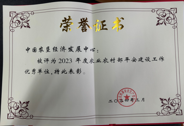 8.中心獲得2023年度農(nóng)業(yè)農(nóng)村部平安建設(shè)工作優(yōu)秀單位榮譽(yù)稱號(hào)。