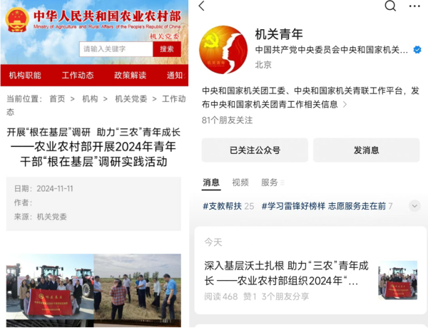 10.中心按照中央和國(guó)家機(jī)關(guān)團(tuán)工委統(tǒng)一部署,組織部系統(tǒng)青年干部10人赴北大荒農(nóng)墾集團(tuán)開展“根在基層”調(diào)研實(shí)踐活動(dòng)。相關(guān)情況被機(jī)關(guān)青年公眾號(hào),部機(jī)關(guān)黨委網(wǎng)站宣傳報(bào)道,活動(dòng)調(diào)研報(bào)告被收錄入《農(nóng)業(yè)農(nóng)村部2024年度青年干部“根在基層”調(diào)研實(shí)踐材料匯編》。
