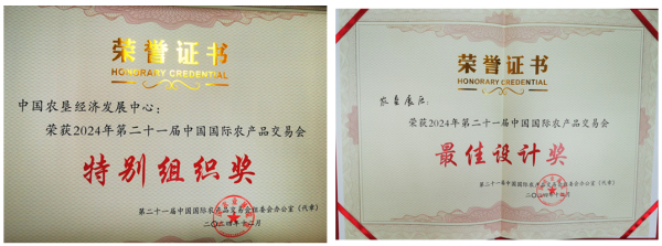 7.2024年11月,中心組織農(nóng)墾企業(yè)參加第二十一屆中國(guó)國(guó)際農(nóng)產(chǎn)品交易會(huì),中國(guó)農(nóng)墾品牌發(fā)布推介活動(dòng)被微觀三農(nóng)等媒體宣傳報(bào)道,中心獲得組委會(huì)“特別組織獎(jiǎng)”,農(nóng)墾展區(qū)獲得組委會(huì)“最佳設(shè)計(jì)獎(jiǎng)”。