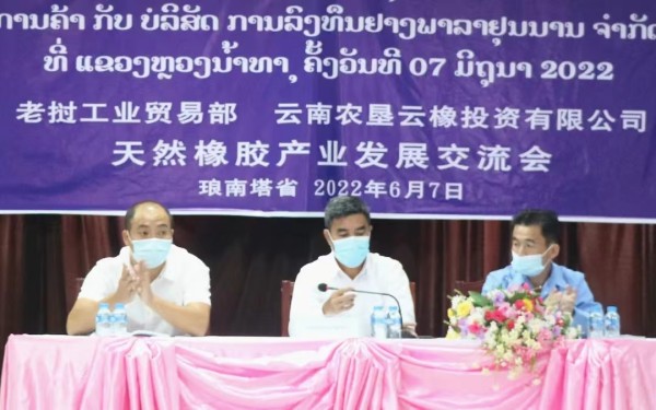 6月7日,老撾工業(yè)與貿(mào)易部工業(yè)司副司長散里·布灑迪一行到云南農(nóng)墾云橡投資有限公司開展天然橡膠產(chǎn)業(yè)專題調(diào)研。老撾南塔省工業(yè)與貿(mào)易廳副廳長康喬·萬通,公司黨工委副書記、副總經(jīng)理(主持工作)李沐璠陪同調(diào)研。