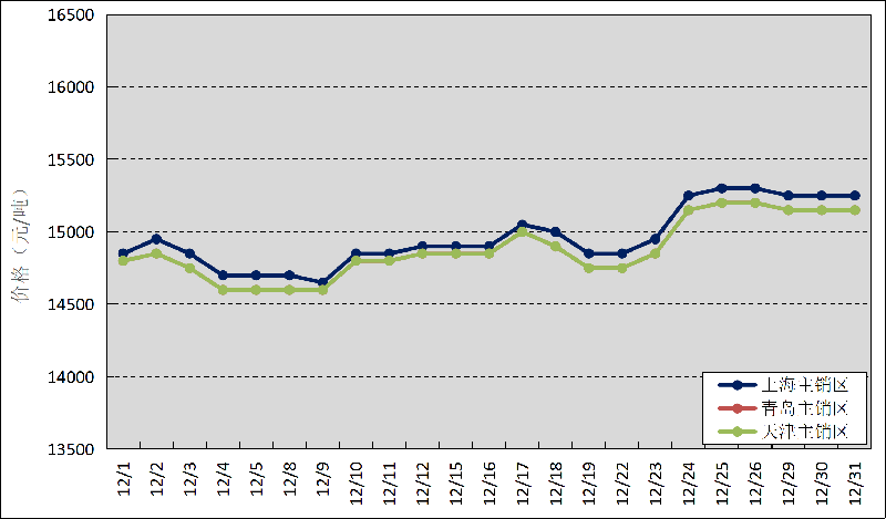 圖3 2025年12月國內(nèi)主銷區(qū)天然橡膠價(jià)格走勢(shì)