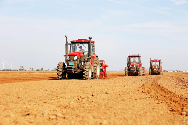 日前,在位于安徽省滁州市明光市境內(nèi)的安徽農(nóng)墾潘村湖農(nóng)場(chǎng)第二農(nóng)業(yè)生產(chǎn)管理區(qū),5臺(tái)旋耕施肥播種復(fù)式一體機(jī)正在開(kāi)展小麥播種作業(yè)?!敖衲瓴テ谡w較往年有所推遲,采用輕簡(jiǎn)化新型機(jī)械作業(yè),可縮短作業(yè)周期,促進(jìn)及早出苗?!迸舜搴r(nóng)場(chǎng)總經(jīng)理助理程國(guó)華說(shuō)。