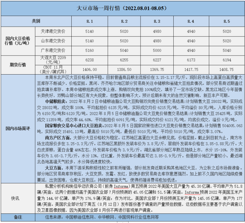 天然橡膠、大豆、玉米市場(chǎng)一周行情(2022.08.01-08.05)