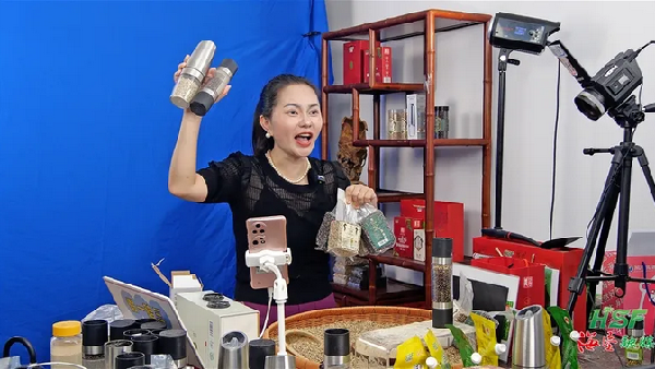 海墾“昌農(nóng)牌”大坡胡椒直播間帶貨現(xiàn)場(chǎng)。劉家宋 攝