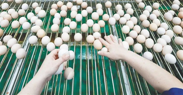 3月21日,海南農(nóng)墾300萬(wàn)只蛋雞全產(chǎn)業(yè)鏈項(xiàng)目生產(chǎn)基地,工作人員在分揀蛋品。海南日?qǐng)?bào)記者 袁琛 攝