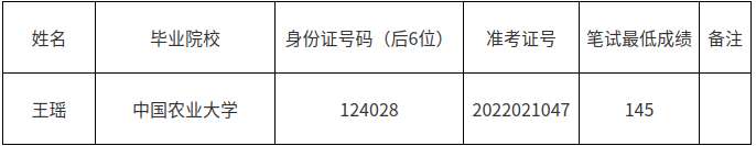 我單位2022年度公開招聘應(yīng)屆畢業(yè)生面試人選確認(rèn)工作已經(jīng)結(jié)束,因技術(shù)推廣處農(nóng)業(yè)技術(shù)推廣工作職員(20222001)有考生因個人原因自愿放棄面試資格?,F(xiàn)按照筆試成績由高到低的順序進(jìn)行遞補(bǔ),遞補(bǔ)人選名單如下: