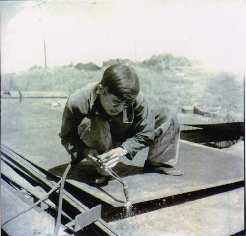 元旦過后,在沒有任何造船專業(yè)機械設備的情況下,大家用雙肩把第一塊鋼板抬上了船臺,接著兩塊、三塊、五塊、十塊,每塊鋼板都是1.4米×6米……