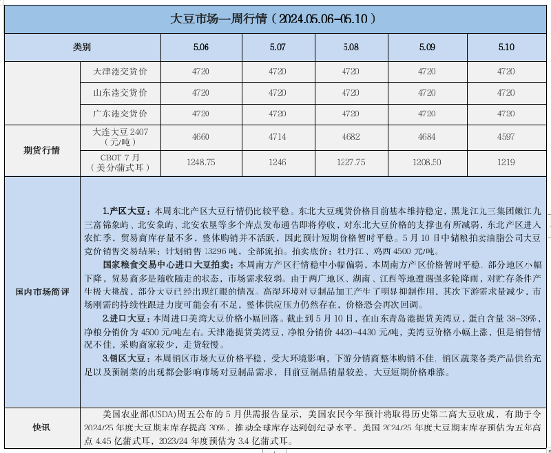 天然橡膠、大豆、玉米市場一周行情(2024.05.06-05.10)