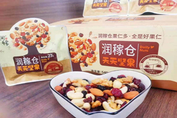 潤稼倉天天堅果:潤稼倉天天堅果根據(jù)不同年齡人群每日攝取堅果營養(yǎng)區(qū)間25g-30g,選取中間參數(shù)27g,采用4種果仁,2種果干配料,營養(yǎng)搭配均衡,富含鈣、維生素、不飽和脂肪酸等,包裝攜帶方便,更適合廣大消費者食用。