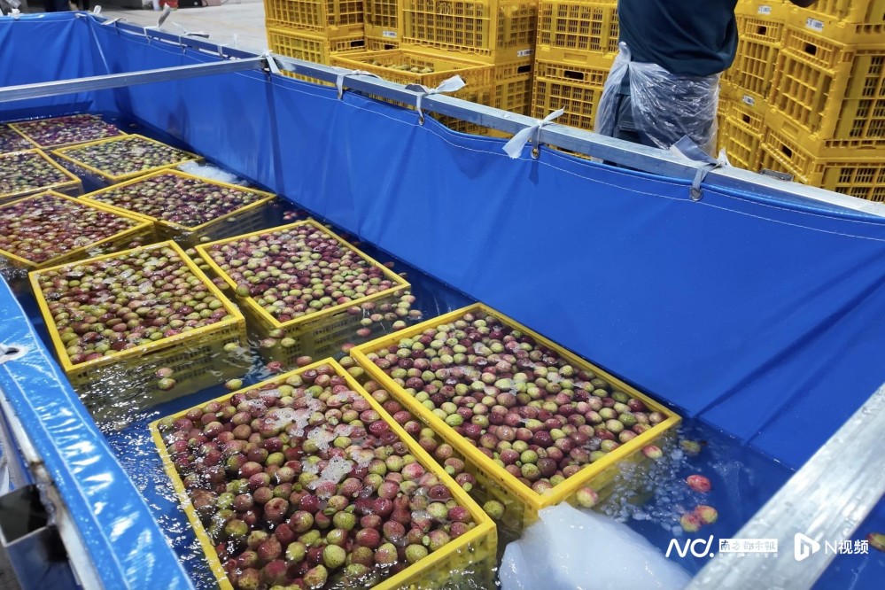 小蜂嗡嗡公司內(nèi),荔枝正進行水冷降溫。南都見習記者 陳宇溪 攝
