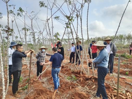 以廣西亞熱帶作物研究所李軍農(nóng)研究員為組長(zhǎng),熱科院品資所劉國(guó)道研究員、李開(kāi)綿研究員、陳松筆研究員和熱科院環(huán)植所陳青研究員為成員的專家組,在大豐農(nóng)場(chǎng)美玉村木薯基地對(duì)申請(qǐng)品種進(jìn)行了現(xiàn)場(chǎng)測(cè)產(chǎn)與品質(zhì)鑒定,并認(rèn)真聽(tīng)取了選育團(tuán)隊(duì)對(duì)木薯“華南22號(hào)”新品種選育情況的匯報(bào),就有關(guān)問(wèn)題進(jìn)行了質(zhì)詢,一致同意木薯“華南22號(hào)”通過(guò)現(xiàn)場(chǎng)鑒評(píng)。