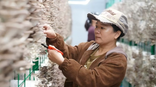 走進這片廠區(qū),三幢出菇房映入眼簾。網(wǎng)架上,一個個秀珍菇菌袋平放在網(wǎng)格間,形態(tài)飽滿的秀珍菇從菌袋兩端探出來?;貑T工拿著剪刀,將大小、形態(tài)、品質(zhì)都符合標準的菌菇剪下,整齊碼放在筐里。在智能化系統(tǒng)的調(diào)控下,溫度、濕度、光照、空氣等環(huán)境因素都得到適當調(diào)節(jié),出菇環(huán)節(jié)的自動化程度達到60%以上,在養(yǎng)菌環(huán)節(jié),自動化程度甚至達到90%以上,基本不需要人為干預。