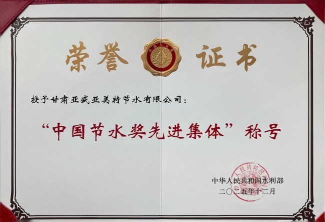 12月26日,首屆中國節(jié)水獎頒獎會在北京召開,亞盛亞美特公司榮獲“中國節(jié)水獎先進(jìn)集體”稱號。該獎項是經(jīng)黨和國家功勛榮譽(yù)表彰工作委員會批準(zhǔn)設(shè)立、由水利部主辦的節(jié)水領(lǐng)域最高獎項。