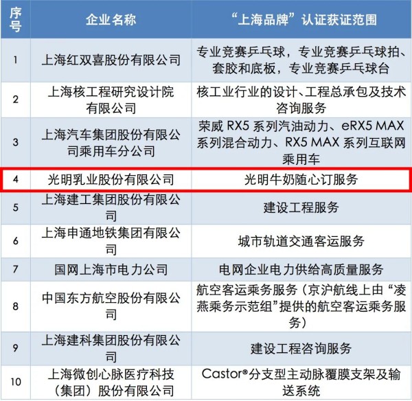 “上海品牌”以世界先進標準為引領(lǐng),以此推進“上海服務(wù)、上海制造、上海購物、上海文化”四大領(lǐng)域建設(shè),并以此構(gòu)建更高質(zhì)量、高要求的市場要求。2018年光明乳業(yè)首次通過認證,成為首家以食品通過認證的企業(yè),2022年光明牛奶隨心訂服務(wù)再創(chuàng)佳績,榮耀繼續(xù)。