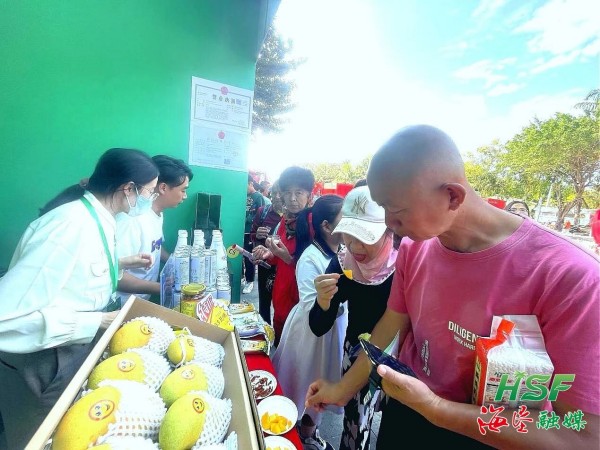 在海墾果蔬的展區(qū)前,美味鮮甜的椰子汁、色彩鮮艷的果蔬拼盤(pán)、細(xì)膩?lái)樆乃苛軘[放整齊,吸引了大量市民和游客前來(lái)選購(gòu)。實(shí)惠的價(jià)格、優(yōu)選的品質(zhì),讓攤位前人氣爆棚,叫賣(mài)聲不絕于耳?!斑^(guò)了臘八就是年了,聽(tīng)說(shuō)今天三亞年貨節(jié)開(kāi)幕,我們專(zhuān)程過(guò)來(lái)看看,這里貨品齊全、性價(jià)比很高!”來(lái)自廣東的范女士一家人精心挑選著心儀的年貨,臉上洋溢著幸福的笑容。