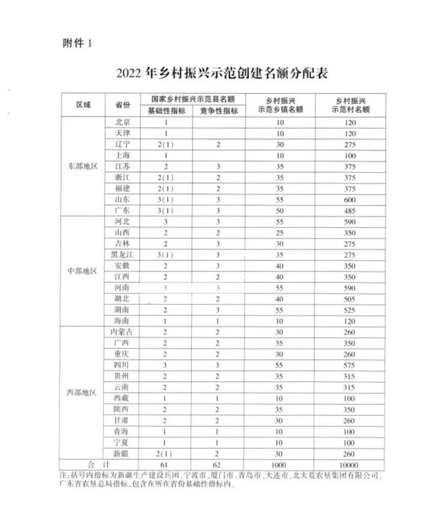 附件:1.2022年鄉(xiāng)村振興示范創(chuàng)建名額分配表