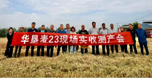 華墾麥23現(xiàn)場(chǎng)實(shí)收測(cè)產(chǎn)會(huì)。張萬海 供圖