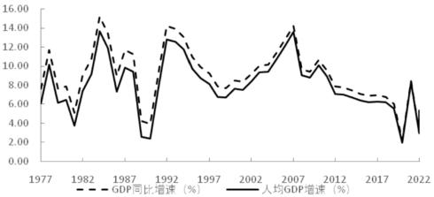 圖1 中國GDP和人均GDP增速(1977-2022)