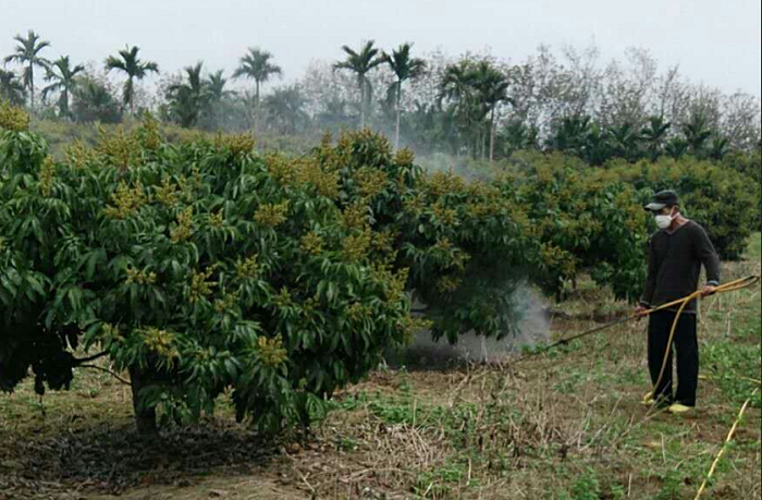 二、成蟲羽化高峰期進(jìn)行施藥,噴殺荔枝蒂蛀蟲成蟲。推薦使用藥劑為:具有強(qiáng)觸殺作用的擬除蟲菊酯,或5%啶蟲脒乳油,或荔豐保,使用所推薦劑量進(jìn)行內(nèi)膛噴霧防治(見下圖)。