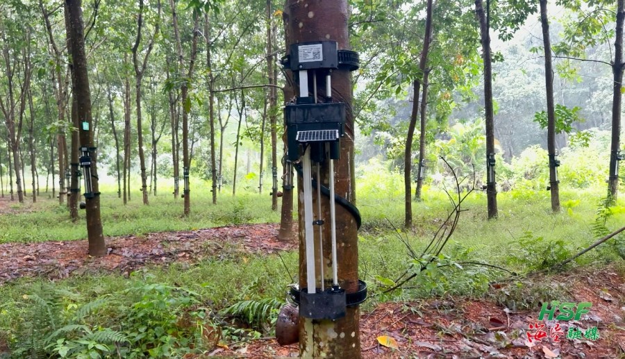 “最厲害的是它的‘智能中樞’。”陳幫華點(diǎn)開配套終端App,手機(jī)屏幕上實(shí)時跳動著每株橡膠樹的動態(tài)數(shù)據(jù)——樹齡、皮厚、上次割膠時間、本次切割深度……設(shè)備會根據(jù)這些數(shù)據(jù)自主優(yōu)化參數(shù),精準(zhǔn)控制刀片切入深度,確保0.1毫米厚的水囊皮不受損傷。更關(guān)鍵的是,它支持遠(yuǎn)程云端操控,可批量調(diào)度多臺機(jī)器協(xié)同作業(yè),徹底突破了傳統(tǒng)割膠對時間與空間的限制。陳幫華指著刀頭的壓力傳感器補(bǔ)充道:“這顆‘神經(jīng)末梢’能實(shí)時感知樹皮阻力變化,比老膠工幾十年的手感還靈敏?!?