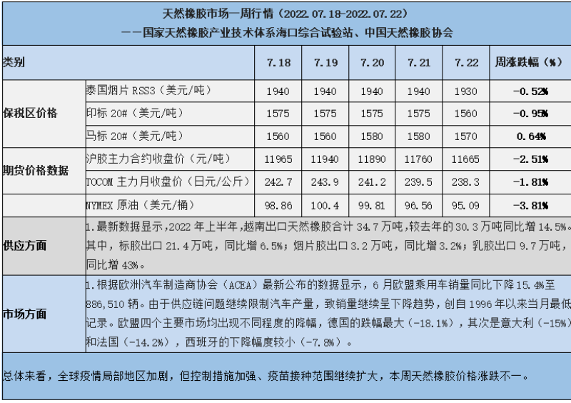 天然橡膠、大豆、玉米市場一周行情(2022.07.18-07.22)