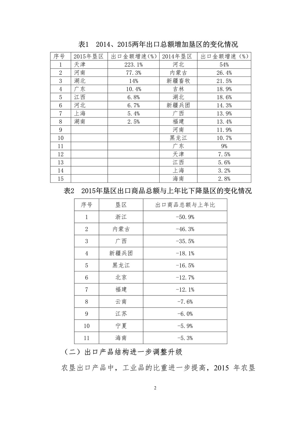 2015年全國(guó)農(nóng)墾產(chǎn)品出口情況分析報(bào)告