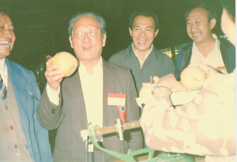 9月27日晚上7-10時(shí),展銷會(huì)安排專賣展銷,主要是黨中央、國務(wù)院領(lǐng)導(dǎo)人和各部委辦負(fù)責(zé)人來展銷會(huì)參觀、購物。晚上八點(diǎn)多,何康等部領(lǐng)導(dǎo)先后來到安徽展銷點(diǎn)參觀。何康駐足碭山酥梨柜臺(tái),隨手拿起一個(gè)金黃的酥梨在手心里掂量著,對陪同在旁的安徽農(nóng)墾代表團(tuán)團(tuán)長周維成說道:“我來替你們宣傳。”安徽團(tuán)工作人員手持照相機(jī)對著這個(gè)場面按下快門,留下本文開頭介紹的那個(gè)寶貴鏡頭。何康說過這句話之后,把梨子放回原處。呂清問碭山梨一個(gè)有多重,隨團(tuán)的碭山果園場售貨員立即拿一個(gè)梨放在磅秤上,“一斤四兩重”,何康開懷大笑。