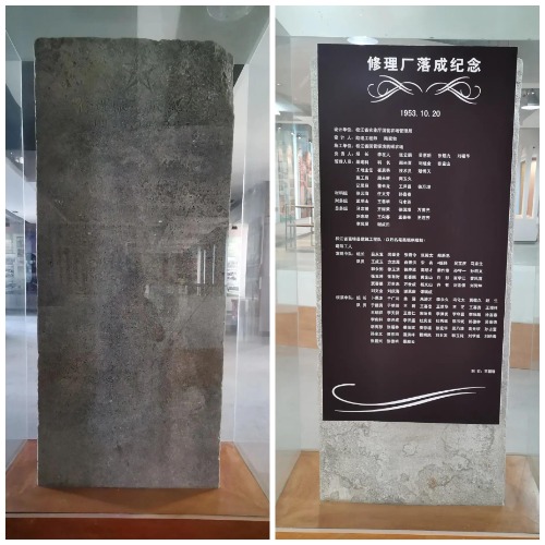除了修理廠,當(dāng)年建設(shè)者們還新建了宿舍、食堂、辦公室、家屬房等合計(jì)近三千平方米的建筑物。廠房落成時(shí),大家歡欣鼓舞,都為自己能參加這樣的工程感到自豪,落成儀式從簡(jiǎn),只放了一掛鞭炮。為了紀(jì)念建場(chǎng)以來(lái)第一大工程,施工隊(duì)專門(mén)從富錦請(qǐng)了一個(gè)叫王朝瑞的石匠刻了一個(gè)碑,把所有建設(shè)者的名字都刻在了碑上,碑立在廠房正門(mén)西南側(cè),作為永恒的紀(jì)念。