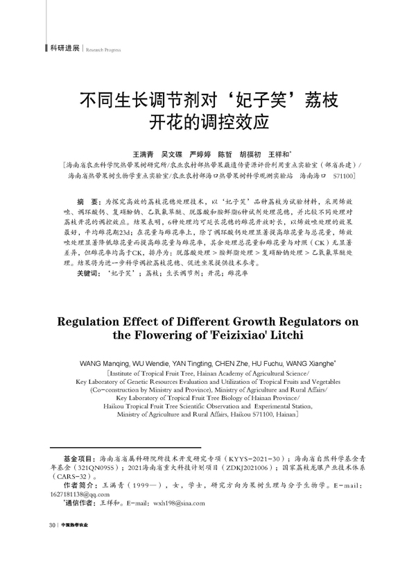 不同生長調(diào)節(jié)劑對‘妃子笑’荔枝開花的調(diào)控效應(yīng)