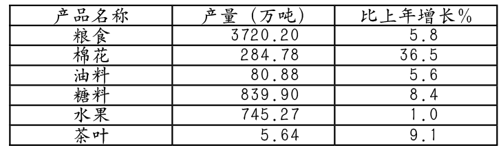 主要農(nóng)產(chǎn)品產(chǎn)量(見(jiàn)表1)。
