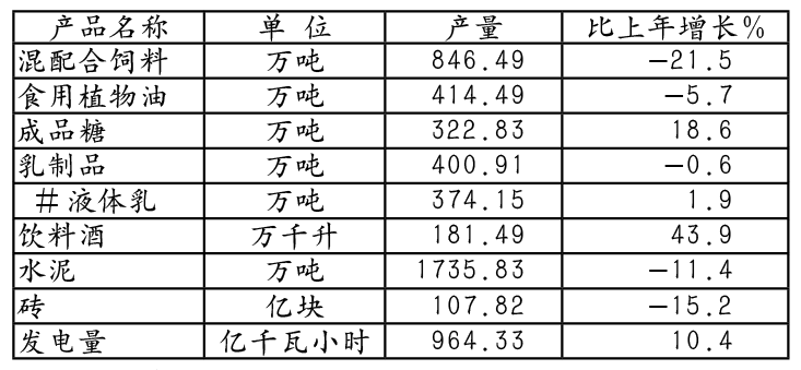 主要工業(yè)產(chǎn)品產(chǎn)量(見(jiàn)表3)。